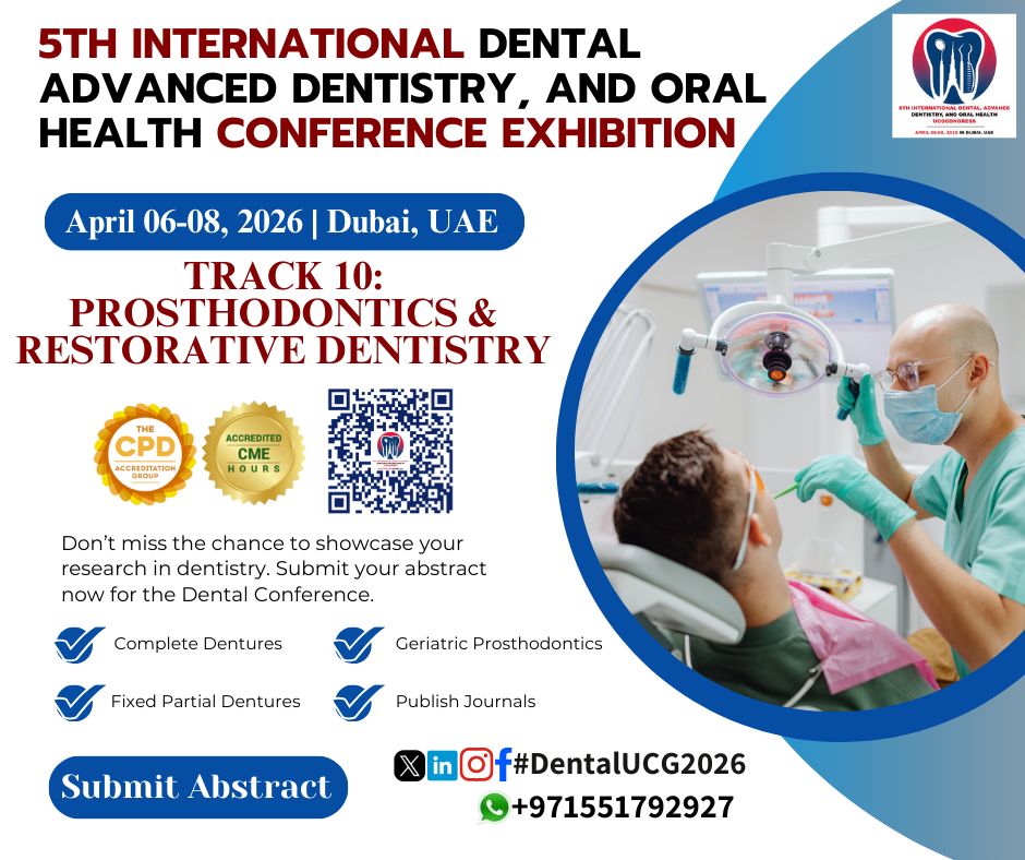 Sub-Tracks of Prosthodontics & Restorative Dentistry:Fixed Prosthodontics, Removable Prosthodontics, Implant Dentistry, Dental Materials, Full Mouth Reconstruction, Cosmetic Dentistry, Esthetic Considerations in Restorative Dentistry, Occlusion and...