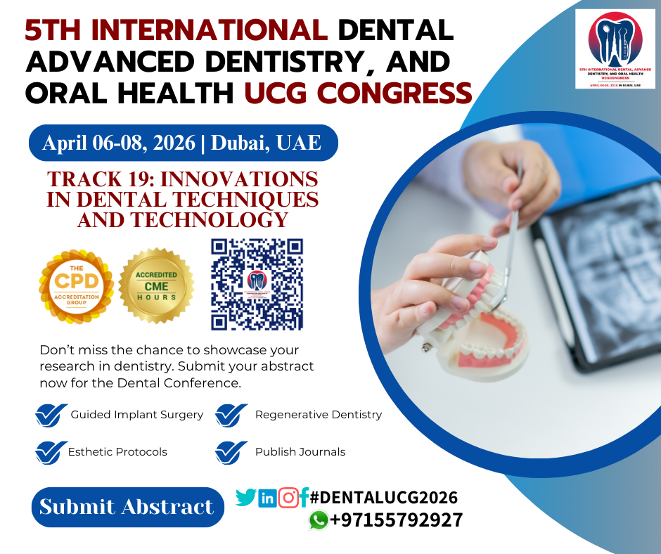 Sub-tracks of Innovations in Dental Techniques and Technology Digital Dentistry, CAD/CAM Technology, 3D Printing in Dentistry, Laser Dentistry, Minimally Invasive Techniques, Smart Materials, Regenerative Dentistry,...