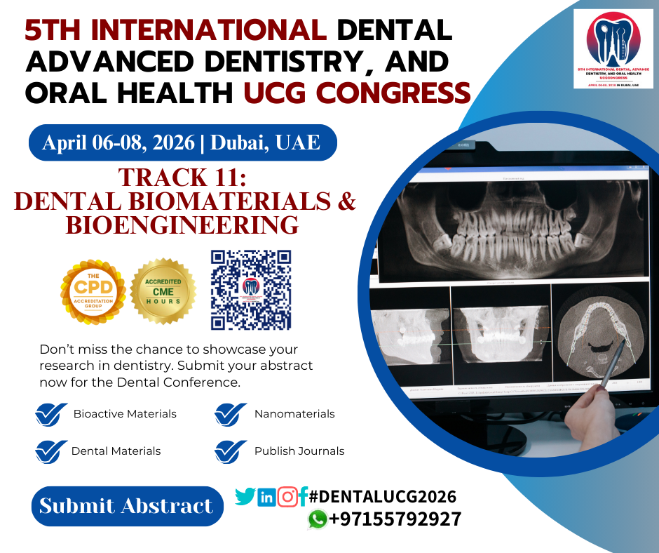 Sub Tracks: Dental Biomaterials & BioengineeringBiocompatible Materials, Advanced Ceramics, Composite Resins, Biomimetic Materials, Regenerative Materials, Dental Implants and Coatings, Tissue Engineering, Smart Materials and Sensors,...