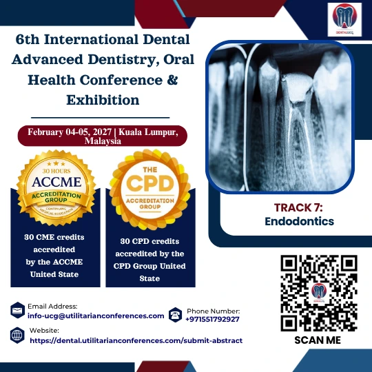 Sub-Tracks: EndodonticsRoot Canal Therapy, Endodontic Instrumentation Techniques, Pulpal & Periapical Diseases, Regenerative Endodontics, Endodontic Microbiology, Endodontic Surgery, Traumatic Dental Injuries, Pulpal Pathology & Diagnosis, Endodontic...