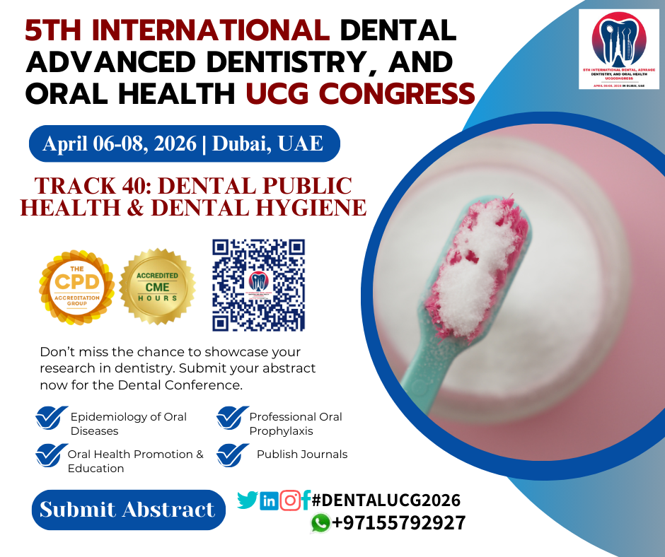 Subtopics: Community Oral Health Programs, Oral Disease Prevention, Epidemiology of Oral Diseases, Fluoride and Sealant Programs, Oral Health Education, Nutrition and Lifestyle Counseling, Infection Control...