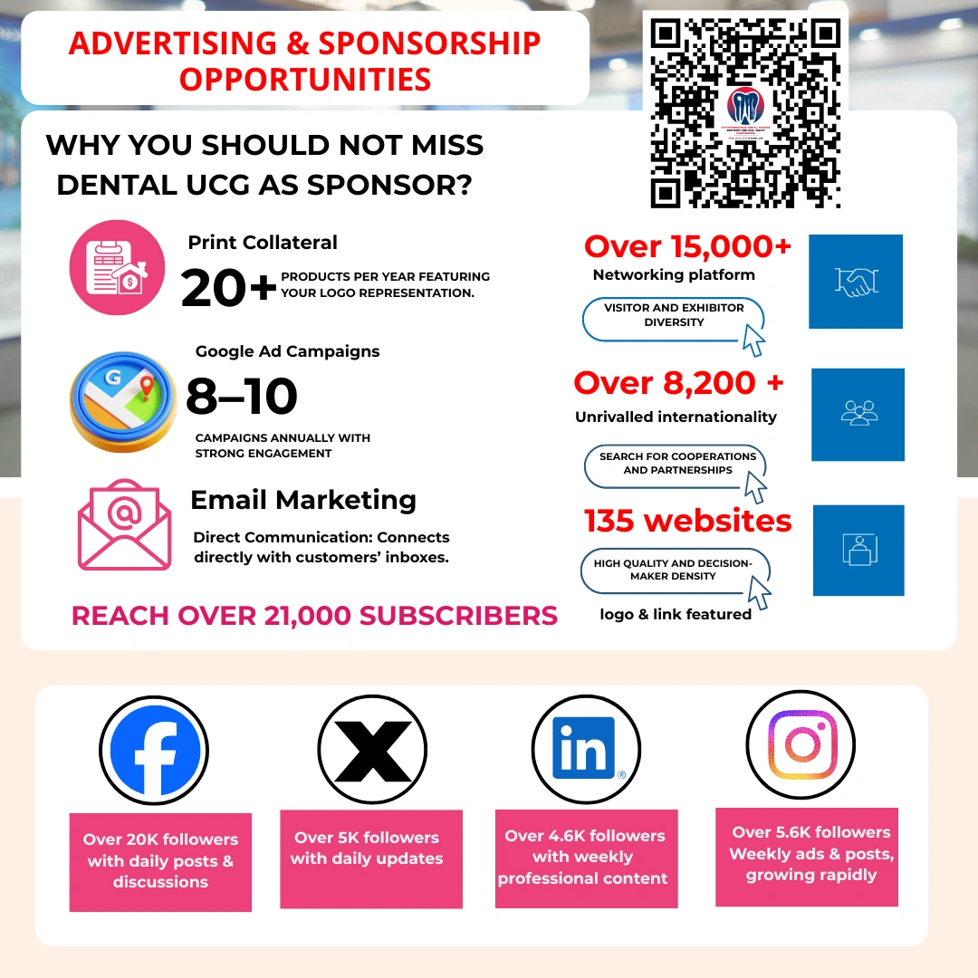 By becoming a sponsor, your organization gains exceptional visibility, strengthens its global network, and enhances its brand presence within the international dental community. This event provides the ideal setting to showcase innovations, build collaborations, and position your company at the forefront of dental advancement.